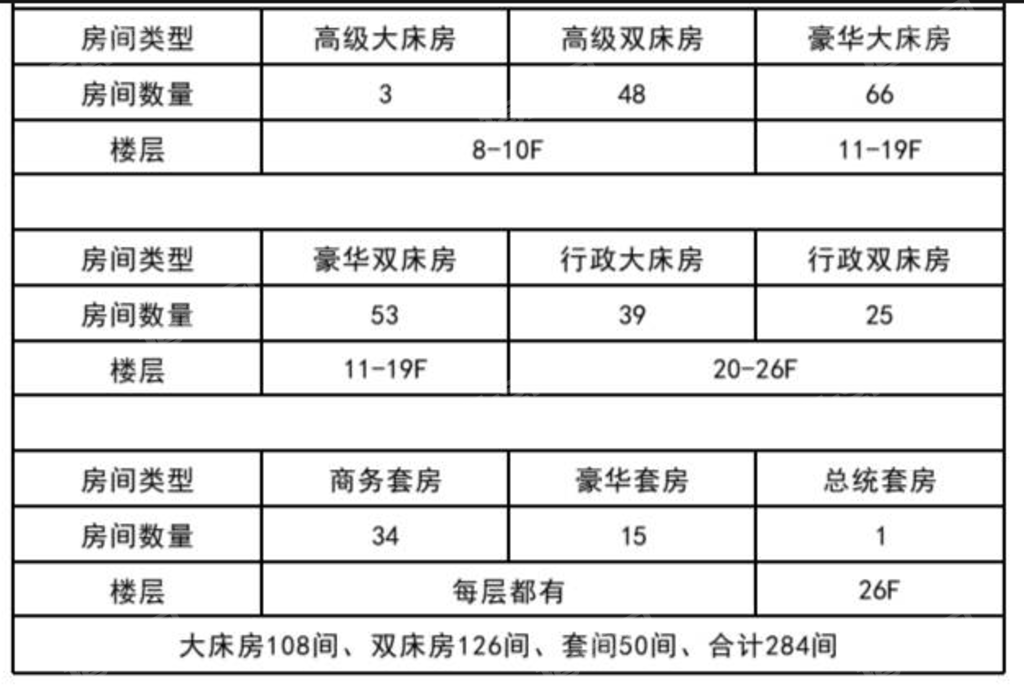 • 房间数量:284 间